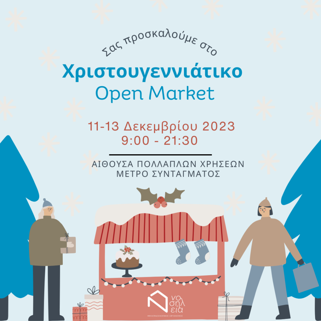 Με στόχο την ενίσχυση της δράσης μας και την ενεργοποίηση του δημόσιου χώρου ως κοινό τόπο συνάντησης, η Νοσηλεία συμμετέχει ως μοναδική ΜΚΟ στο Χριστουγεννιάτικο Open Market που διοργανώνει η Stray Care, στις 11, 12 και 13 Δεκεμβρίου, στην Αίθουσα πολλαπλών χρήσεων του ΜΕΤΡΟ στο Σύνταγμα.
